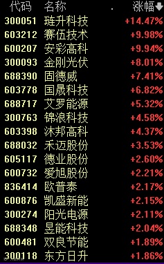 ,琏升科技、金刚光伏、赛伍技术等个股大涨。