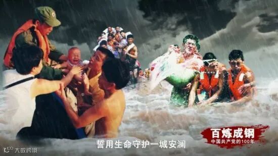 面对汹涌而至的洪峰,看守武汉市江汉区龙王庙闸口的黄义成、唐仁清、李建强等16名共产党员以“人在堤在”决胜气概签下了“誓与大堤共存亡”的生死牌,誓用生命守护一城安澜。