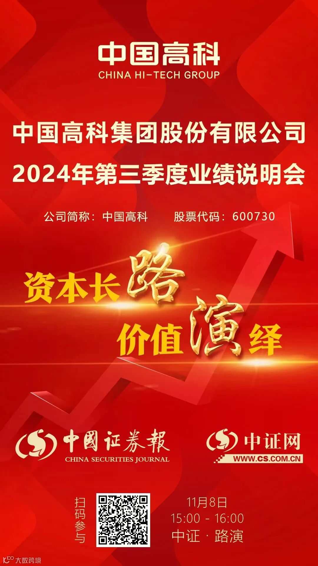 中国高科2024年第三季度业绩说明会11月8日在中证网举行