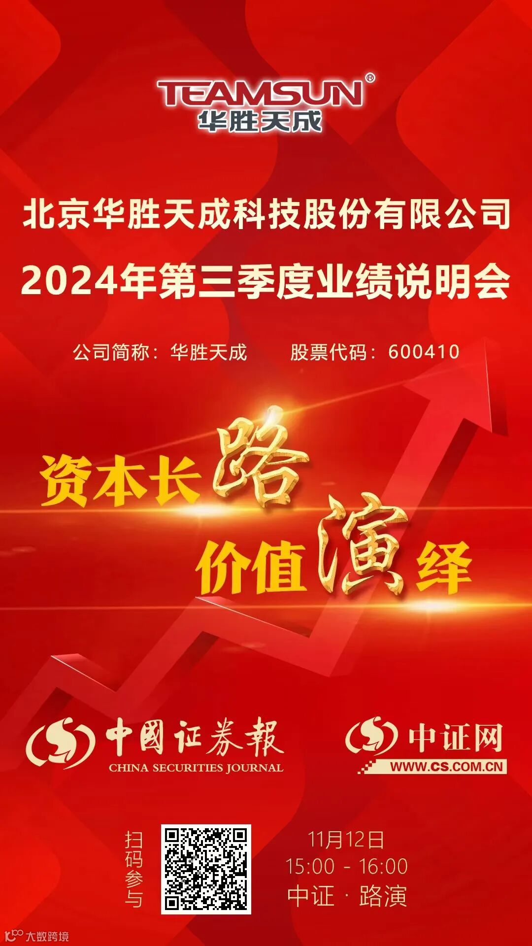 华胜天成2024年第三季度业绩说明会11月12日在中证网举行