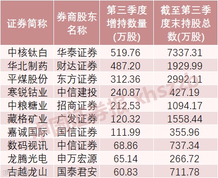 适逢A股上市公司三季报披露季,券商在今年第三季度的持股状况也逐渐揭晓。