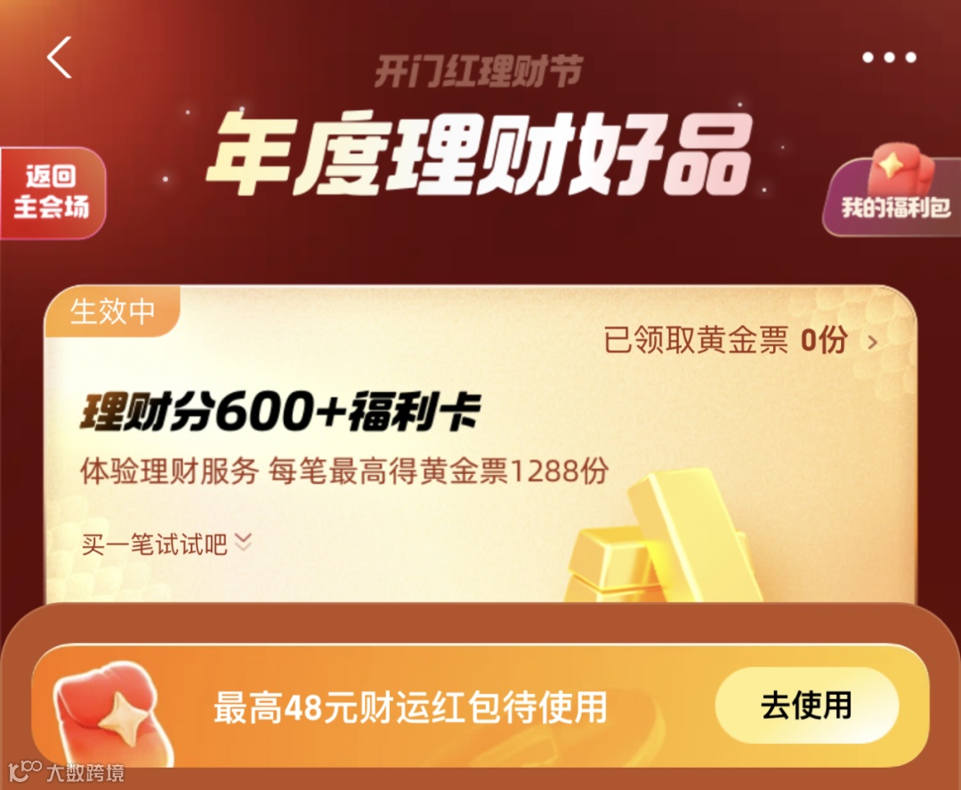 用户首次领取福利卡,可获得66份黄金票。在体验基金交易时,每完成一笔有效交易(不含余额宝、定投、个人养老金产品),系统将随机发放一定数量的黄金票,最高1288分。此外,用户与智能理财助理互动,体验相关服务也可一次性领取随机份额的黄金票。