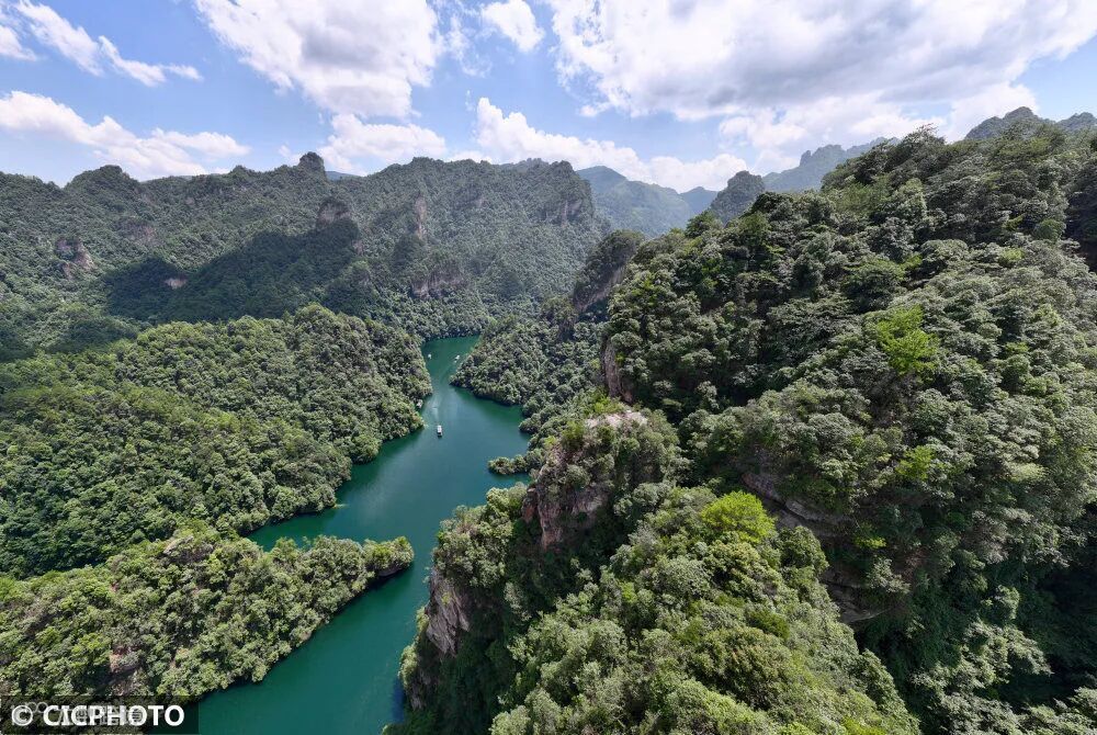 市武陵源区宝峰湖景区游览。(无人机照片)CICPHOTO/吴勇兵 摄
