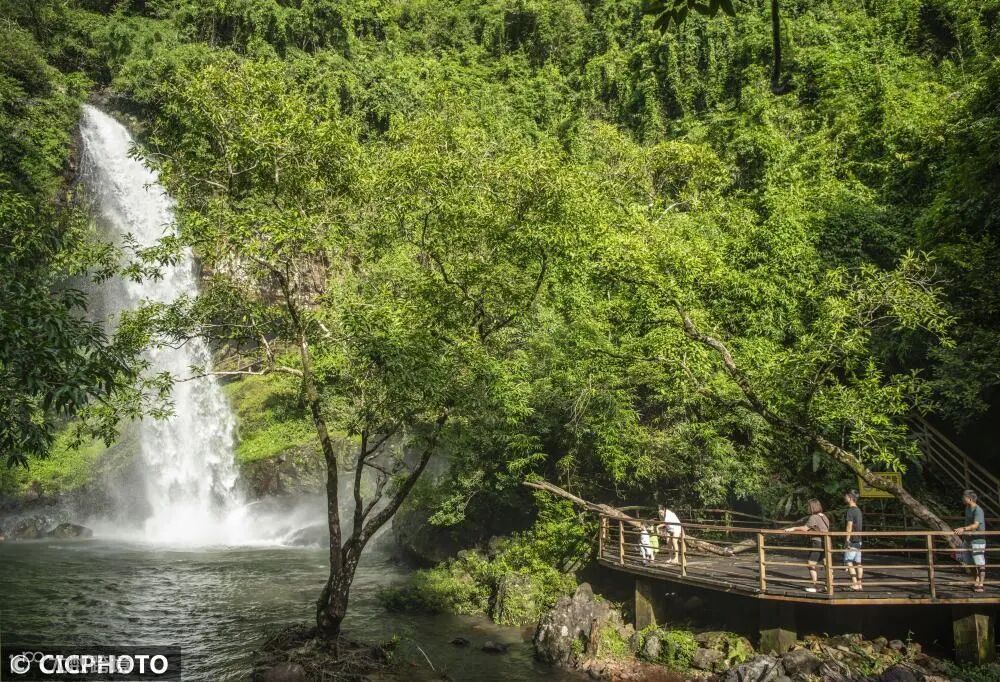 省琼海市石壁镇观赏南牛岭瀑布。CICPHOTO/蒙钟德 摄