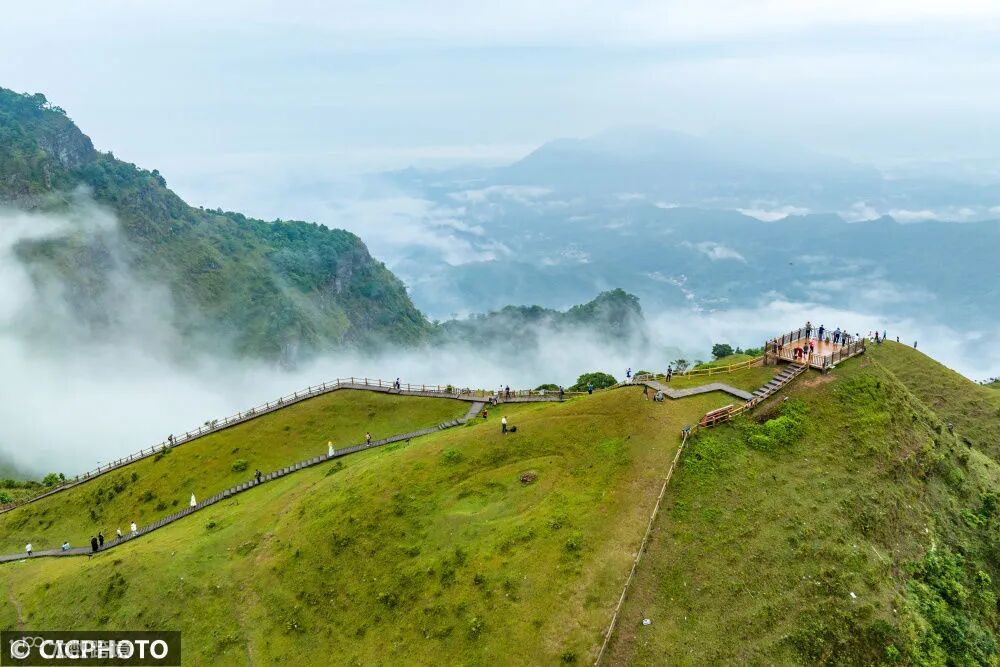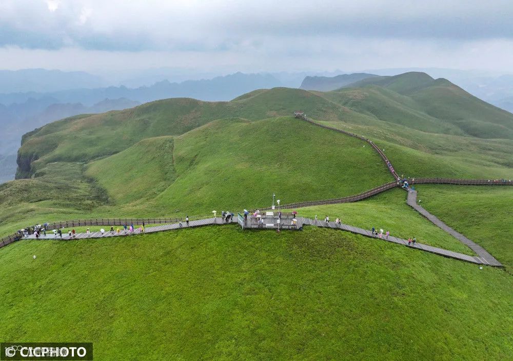 市赫章县阿西里西·韭菜坪景区游玩。(无人机照片)CICPHOTO/胡攀学 摄