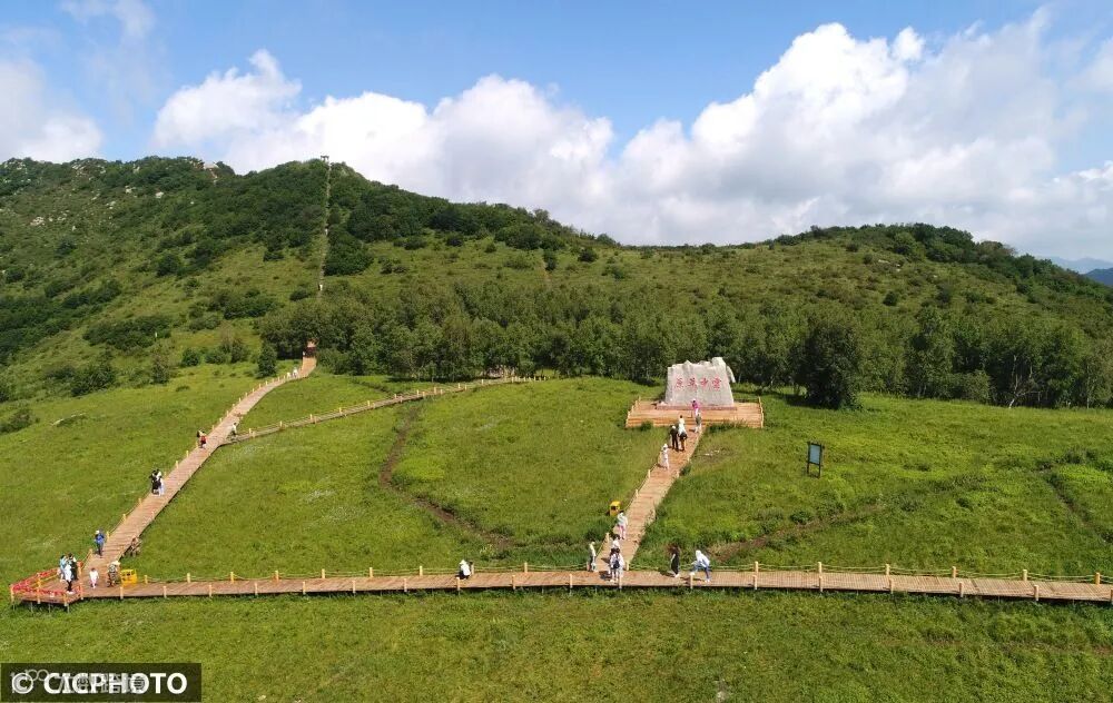 市怀来县新保安镇黄龙山庄云中草原游玩。(无人机照片)CICPHOTO/孙慧军 摄