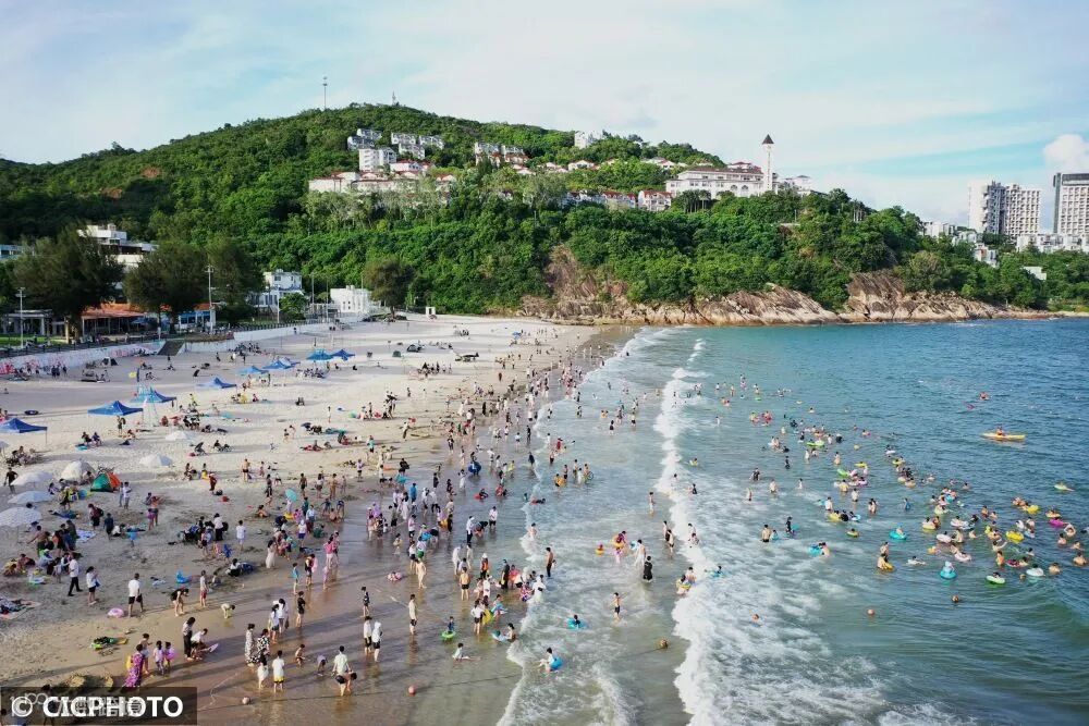 市大鹏新区葵涌街道溪涌社区的海边消暑。CICPHOTO/李坚强 摄