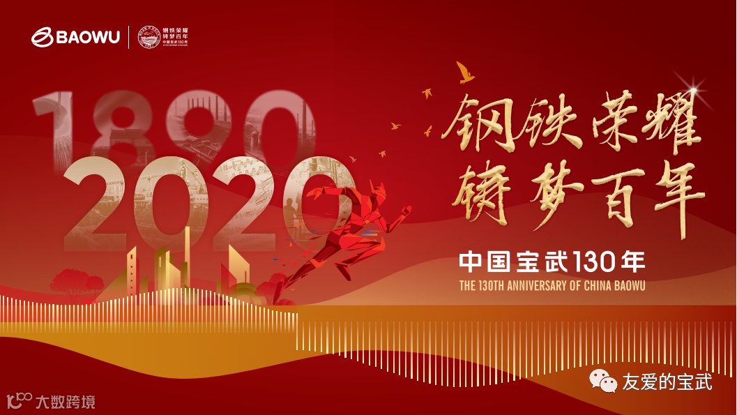 外圈上半部分为此次系列活动的主题词“钢铁荣耀 铸梦百年”。下半部分的“1890”和“2020”代表着中国宝武130年历史的源头和当下,顶端和底端分别是中国宝武的公司标识图案和中文字样。