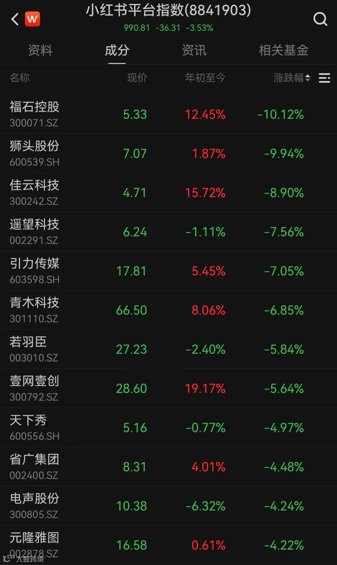 今日,小红书概念大幅调整。福石控股、汇洲智能等热门股跌停。