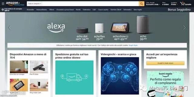 亚马逊于1994年在美国成立,最初是一家在线书店,后来多元化发展,产品包括媒体,电子产品,服装,家具,食品,玩具和珠宝。亚马逊已扩展到包括意大利在内的许多国家,已成为无可争议的全球电子商务领导者。