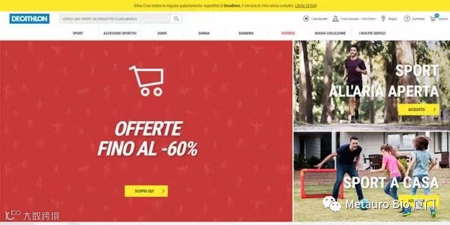 网站:decathlon.it –估计每月流量:590万访问
