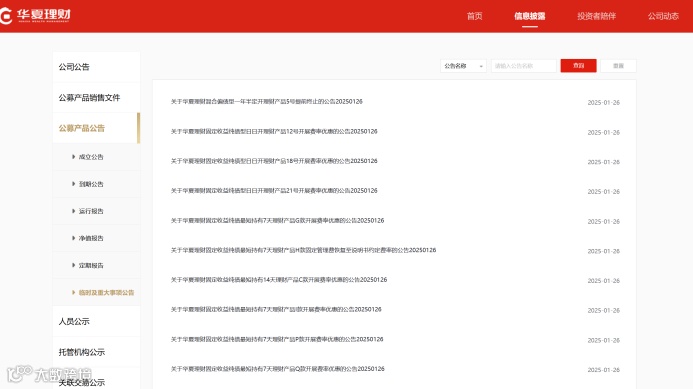 1月26日,华夏理财发布多条公告称,将对旗下“华夏理财固定收益纯债型日日开理财产品12号”“华夏理财固定收益纯债最短持有7天理财产品G款”“华夏理财固定收益纯债最短持有180天理财产品D款”等多款理财产品展开降费活动,调整后多数产品固定管理费率降至0.15%。