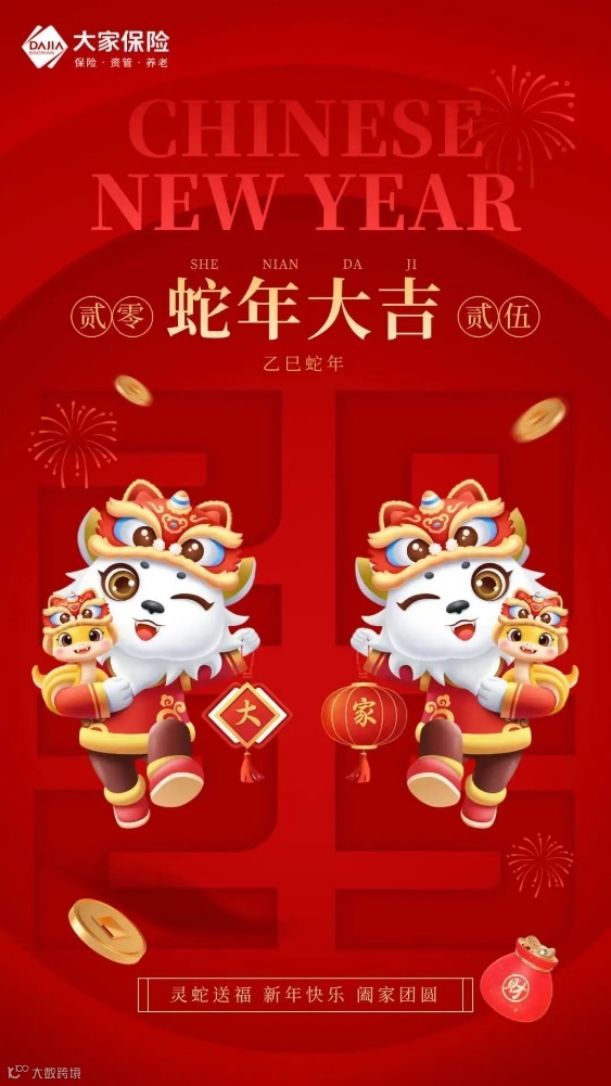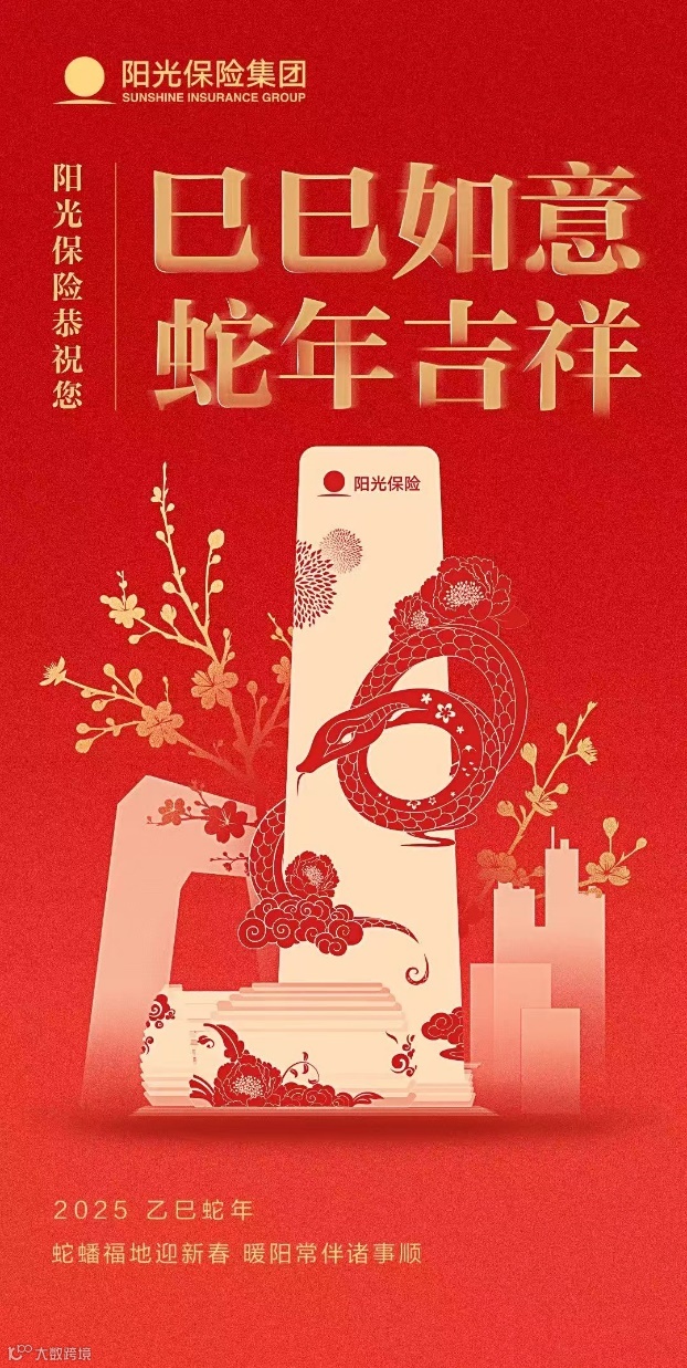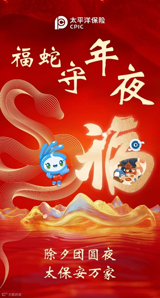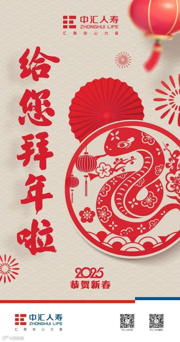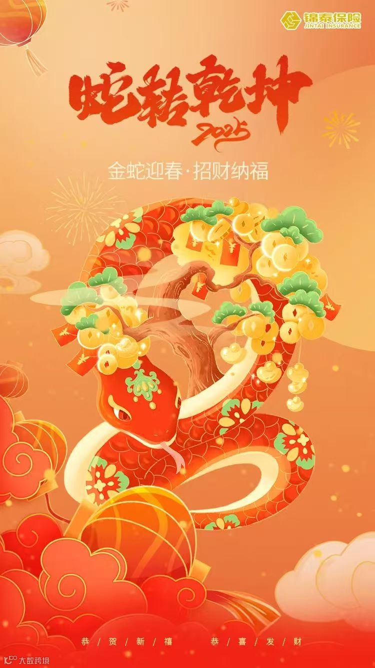 乙巳蛇年的拜年海报自然少不了“蛇”元素。“蛇年大吉”“灵蛇献瑞”“巳巳如意”“巳季安康”……不少保险机构纷纷将“蛇”这一生肖元素融入海报之中,或巧用谐音创作祝福语,表达出对新年的美好祝愿和希望。