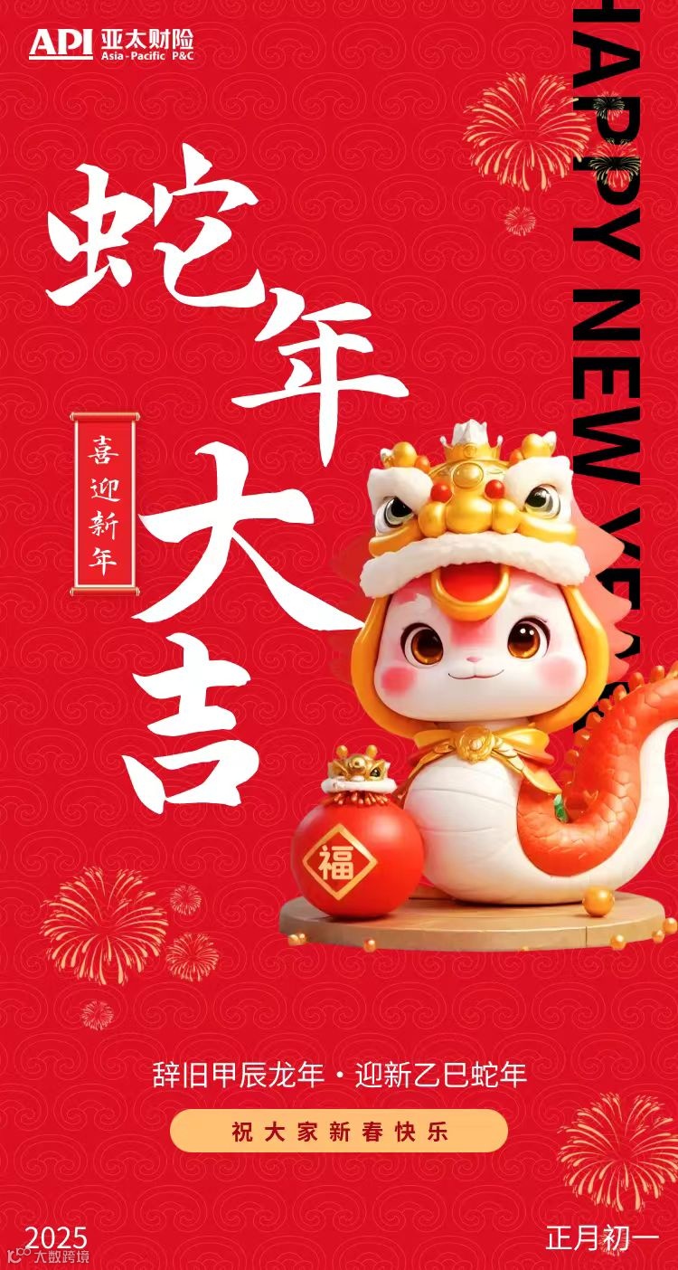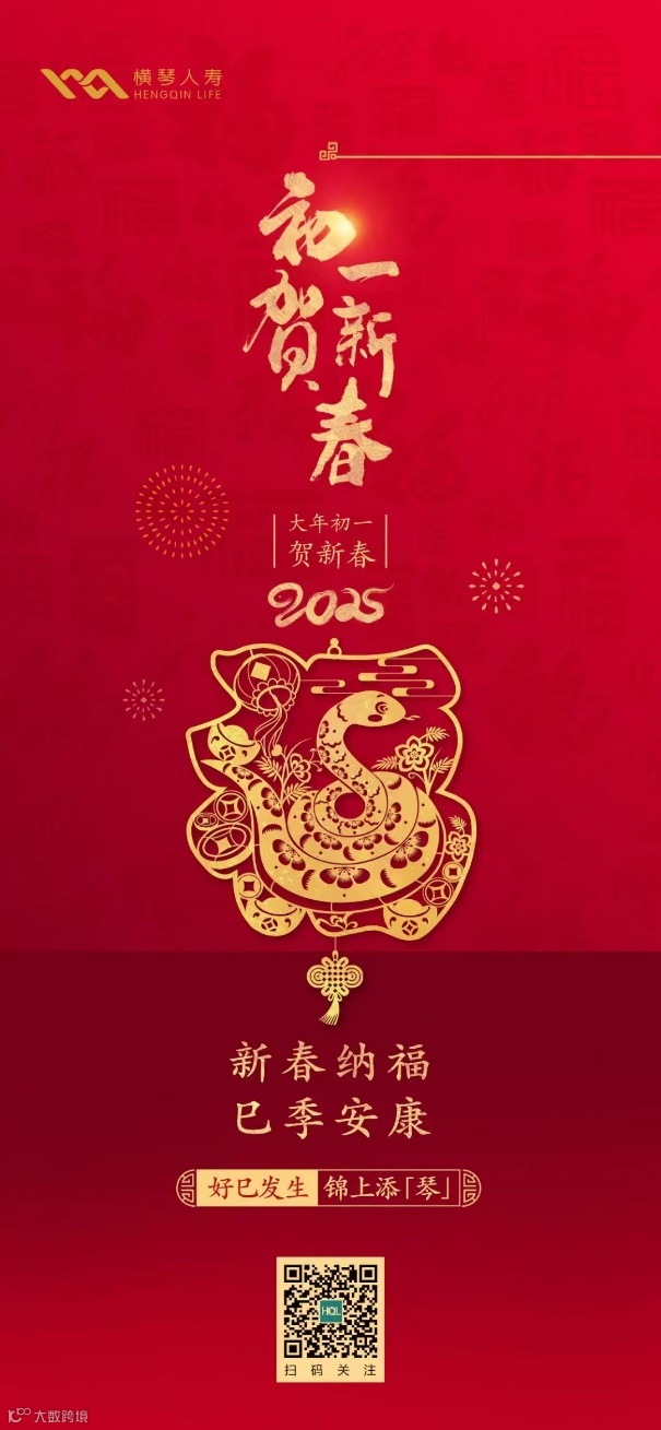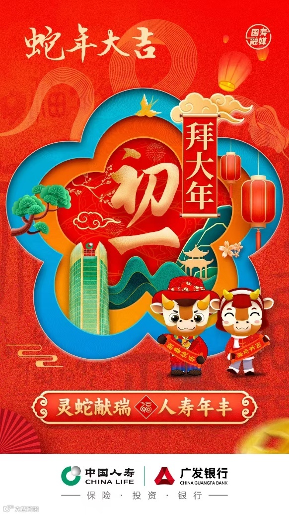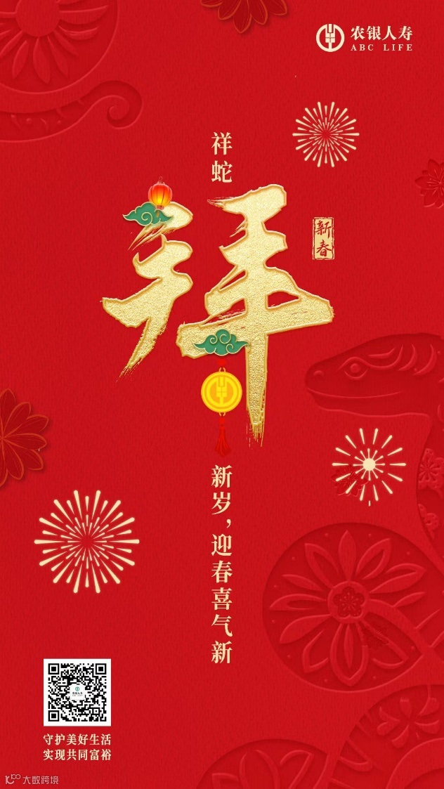 乙巳蛇年的拜年海报自然少不了“蛇”元素。“蛇年大吉”“灵蛇献瑞”“巳巳如意”“巳季安康”……不少保险机构纷纷将“蛇”这一生肖元素融入海报之中,或巧用谐音创作祝福语,表达出对新年的美好祝愿和希望。