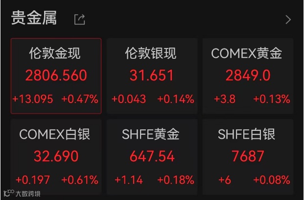 A50异动!黄金突破2800美元