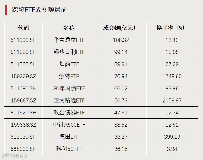 跨境ETF成交额居前