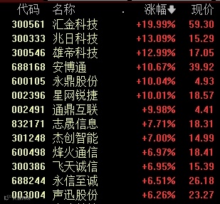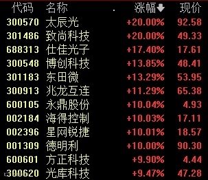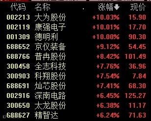 华塑科技、致尚科技、天迈科技“20CM”涨停,欧陆通、兆龙互连涨超10%。