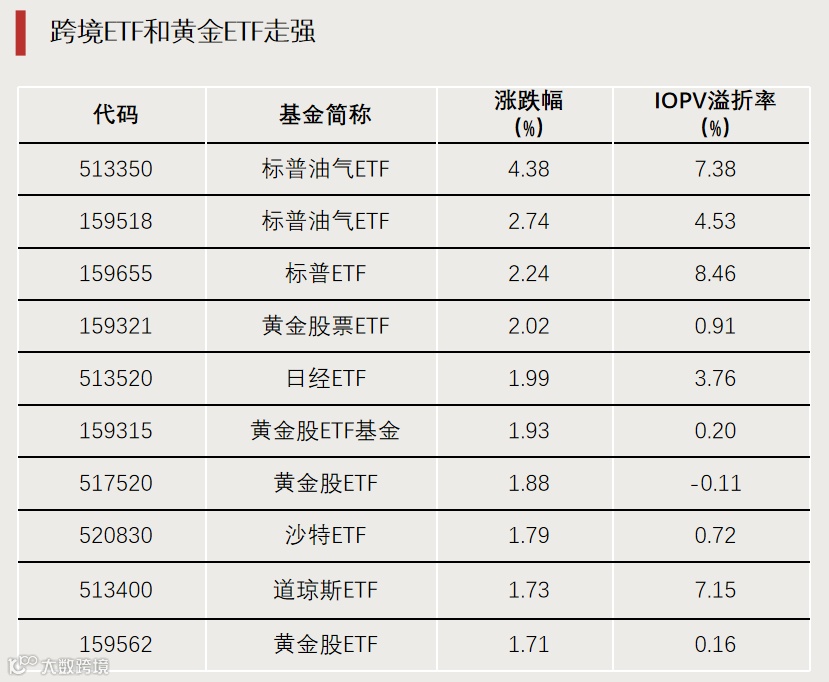 跨境ETF和黄金ETF逆势上涨
