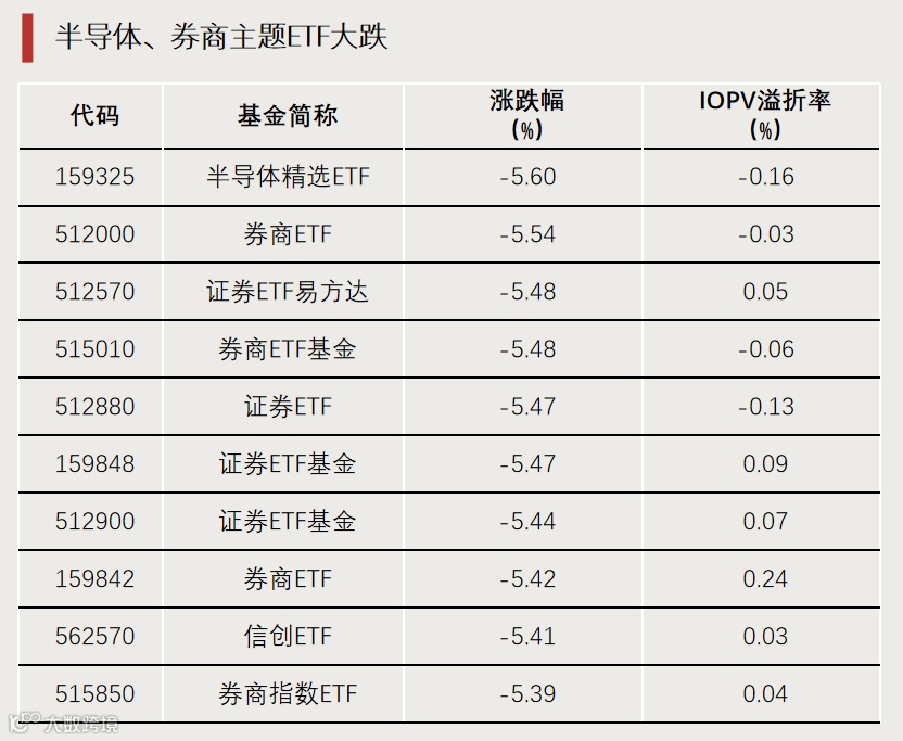 半导体、券商主题ETF大跌