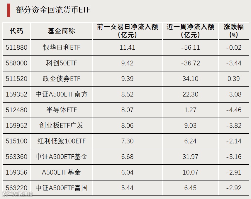 资金流向方面也出现一些避险迹象。曾连续多个交易日遭资金净流出的银华日利ETF在前一交易日扭转态势,获资金净流入超10亿元,一举跻身当天ETF净流入榜首位。