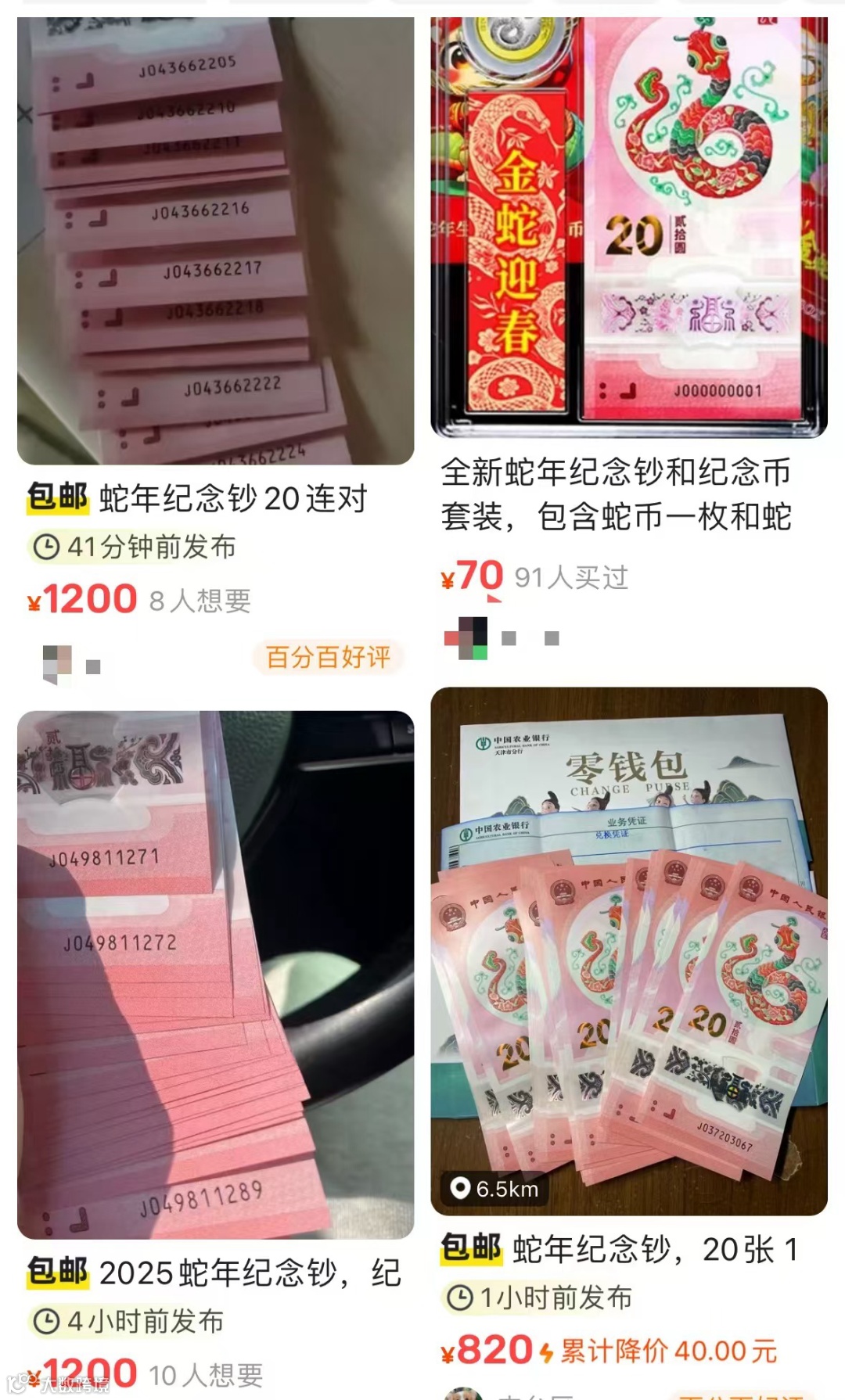 蛇年纪念币、钞的火爆也蔓延至二手交易市场。