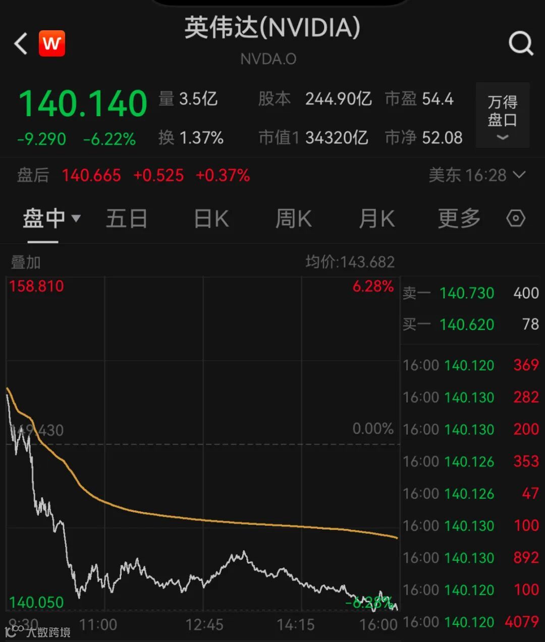个股方面,英伟达周二收跌6.22%,创2024年9月份以来最差单日表现。