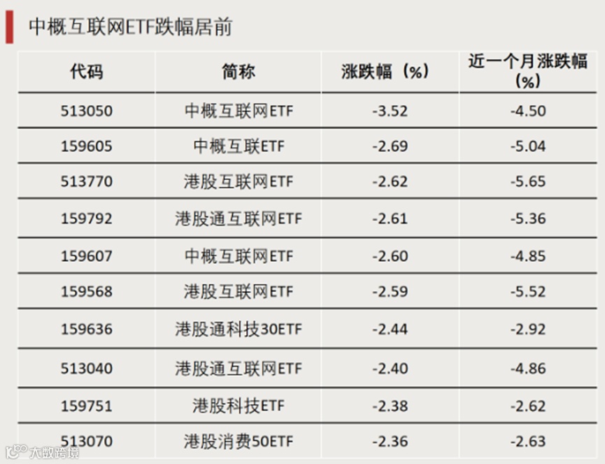 1月7日,港股腾讯控股下跌7.28%。互联网和港股相关ETF跌幅靠前,中概互联网ETF下跌3.52%,中概互联ETF、港股互联网ETF等跌超2.6%。