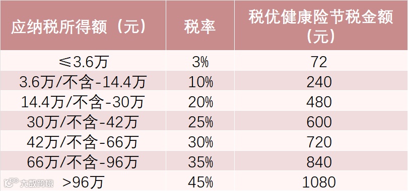 消费者对应的个人所得税税率越高,当年抵扣的个税金额就会越多:若个人所得税的税率为3%,对应的节税金额为72元;10%的税率对应的节税金额为240元;以此类推,45%的税率对应的节税金额为1080元。