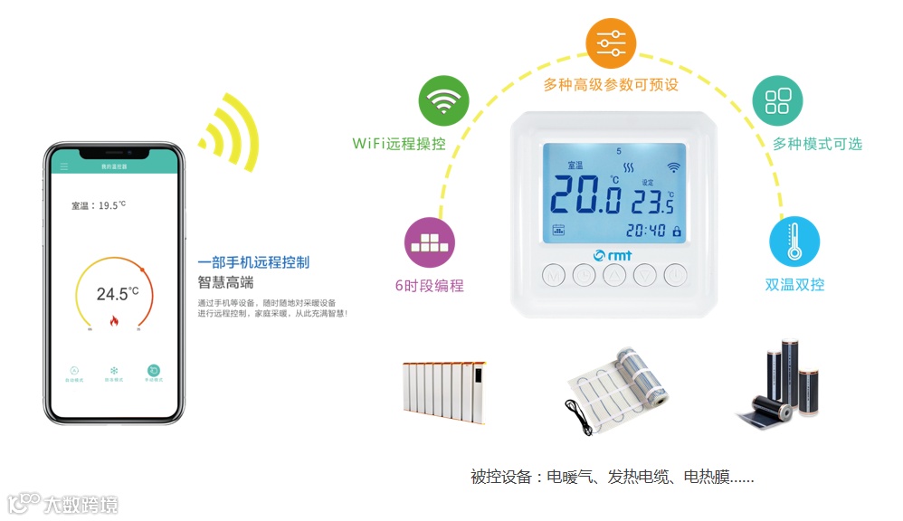 该温控器是一款基于WIFI技术应用的产品。可通过路由器实现数据的实时上传,可实现“智能温控”APP软件端对温控产品的实时控制。产品数据传输稳定、性能可靠、即时响应快、保密性高、结合智能音箱使用也可实现智能语音联动控制。