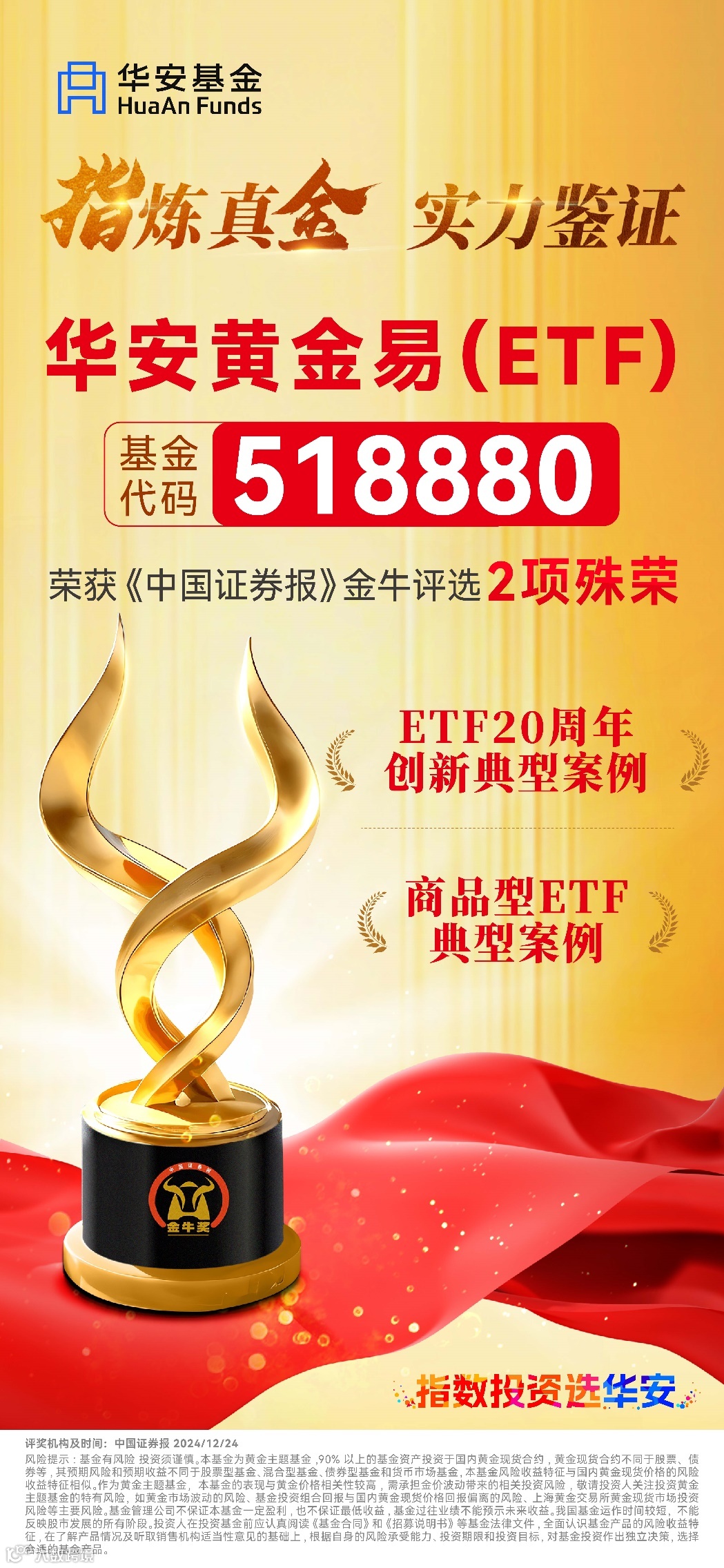 12月24日,中国证券报举办了ETF20周年金牛生态圈典型案例奖颁奖典礼,华安黄金易(ETF)(518880)荣获ETF20周年创新典型案例、商品型ETF典型案例两项大奖。华安基金深耕指数基金领域,已有22年的指数产品管理经验。
