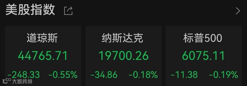 均涨逾1%,苹果微涨;英伟达跌0.05%,Meta跌0.79%,谷歌母公司Alphabet跌约1%。