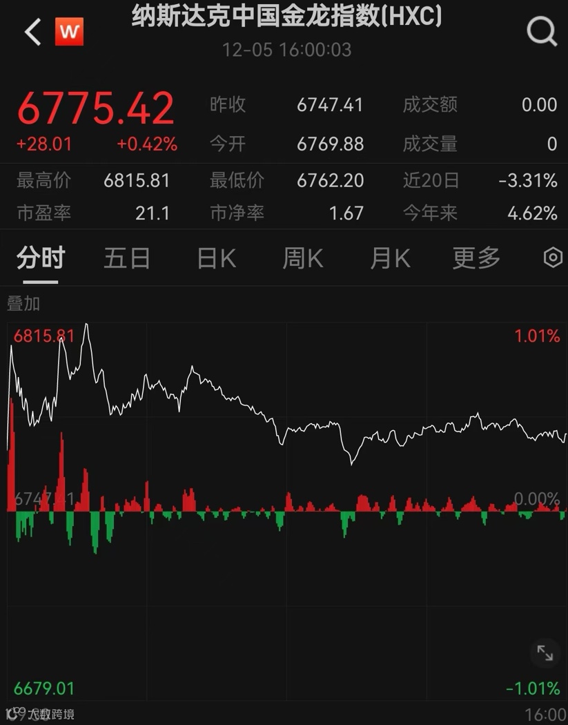 12月5日,美股三大股指小幅收跌,纳指、标普500指数盘中续创历史新高。Wind数据显示,截至收盘,美股道指、纳指、标普500指数分别下跌0.55%、0.18%、0.19%。