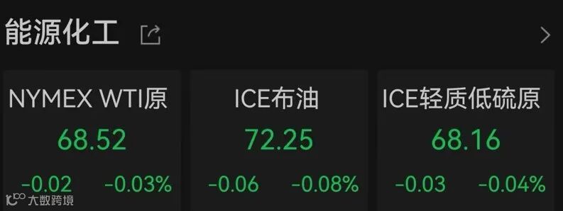 原油期货价格、ICE布油期货价格均小幅下跌。