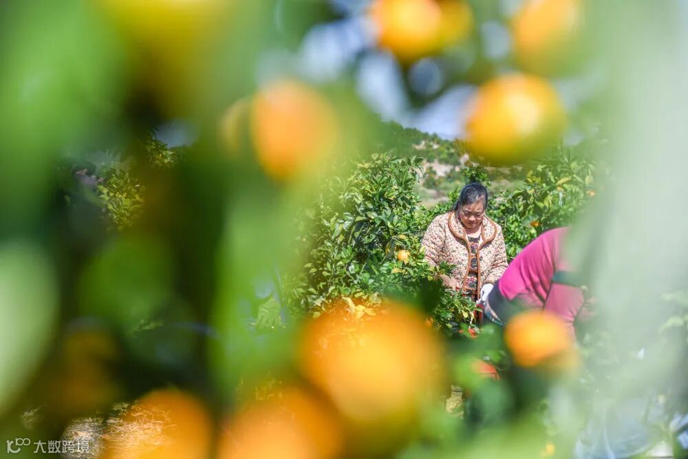 ↑2024年11月28日,湖南省永州市道县四马桥镇郑家村村民在采摘“道州脐橙”。CICPHOTO/蒋克青 摄