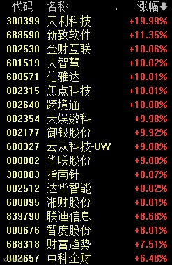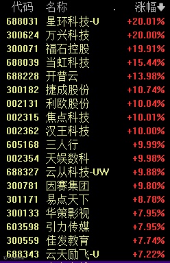 涨停。三六零、金山办公、中文在线、蓝色光标等龙头股均大涨。