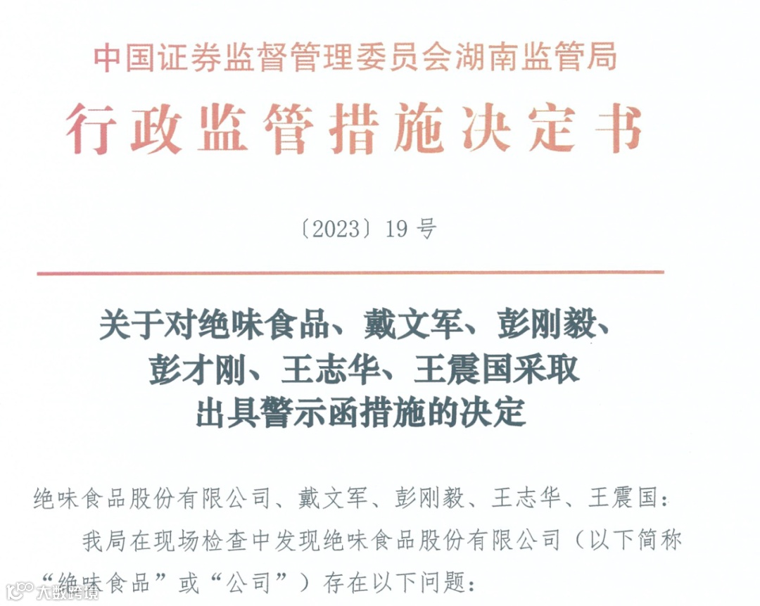 对此,湖南证监局决定对绝味食品以及相关责任人采取出具警示函措施,并记入证券期货市场诚信档案。