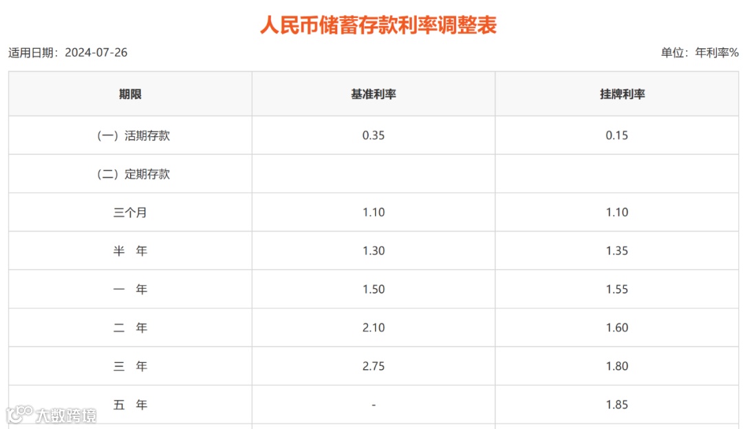 7月25日,工商银行、农业银行、中国银行、建设银行、交通银行、邮储银行六大行集体下调存款利率。