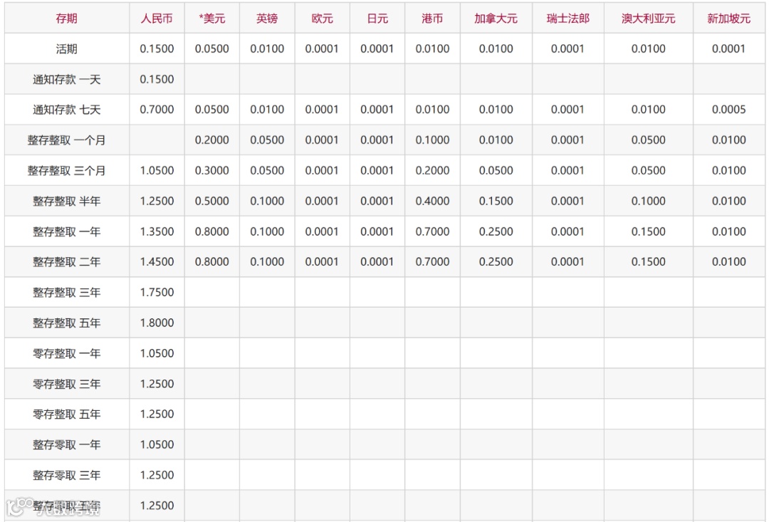平安银行也公告称,自2024年7月26日起调整储蓄及单位人民币存款利率。调整后的活期存款利率为0.15%,3个月、6个月、1年期、2年期、3年期、5年期定期存款挂牌利率分别为1.10%、1.35%、1.55%、1.60%、1.80%、1.85%。