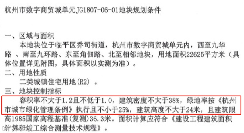 在该地块规划文件中,地控指标明确显示,容积率不大于1.2且不小于1.0,建筑密度不大于38%,建筑高度不大于24米。
