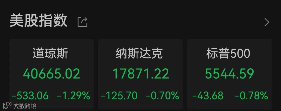 美股三大股指全线收跌
