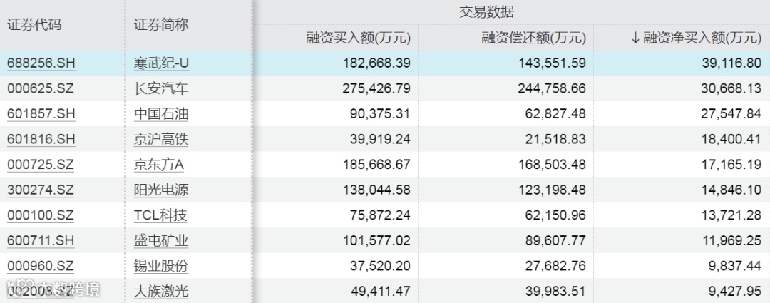 融资客加仓寒武纪-U近4亿元