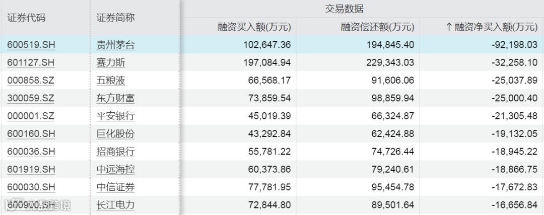 上周融资客对贵州茅台、赛力斯、五粮液净卖出金额居前,分别达9.22亿元、3.23亿元、2.50亿元。从市场表现上看,上周赛力斯跌逾8%。