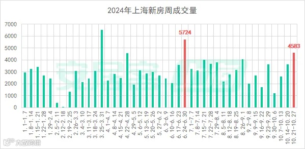 成交套数方面,据安居客上海统计,新房(含商业,下同)上周(10月21日至10月27日)成交4583套(日均成交656套),是自7月以来截至目前单周成交最高的一周。