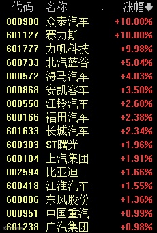 汽车整车板块上涨