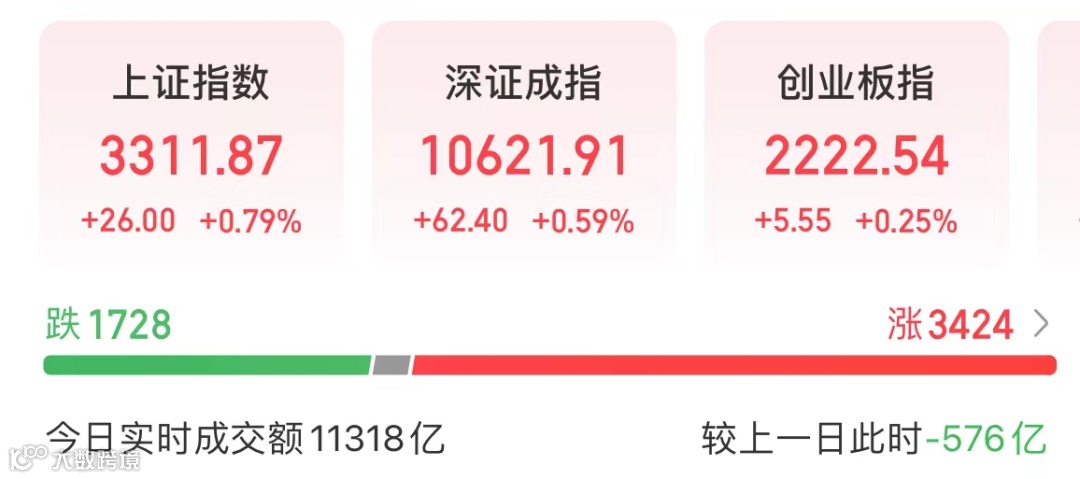 新能源赛道走强,风电板块涨幅最大,紧接着军工板块发力,随后大金融接棒,券商、互联网金融板块开始拉升,天风证券、国海证券、指南针等个股大涨,指数跟随冲高。截至午间收盘,上证指数上涨0.79%,深证成指上涨0.59%,创业板指上涨0.25%。