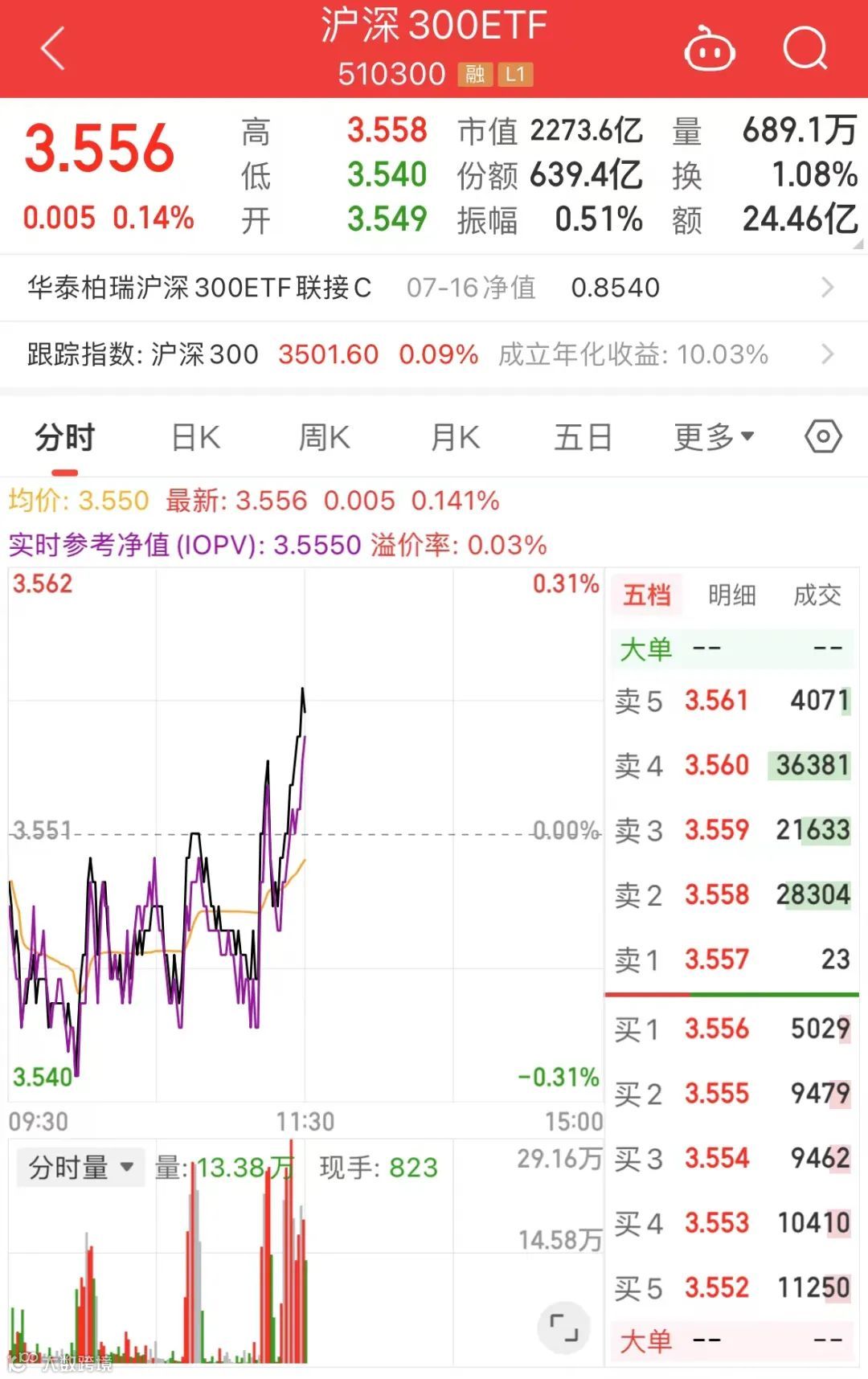 段,又有大资金出手,多只沪深300ETF明显放量。