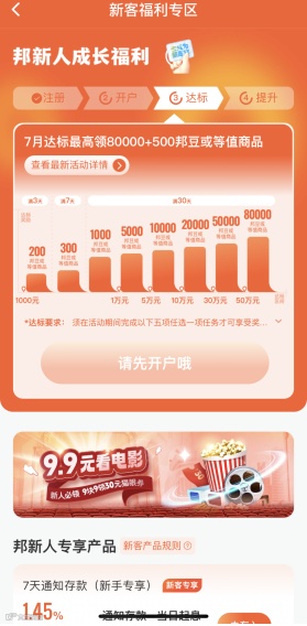 “很多客户都会定时守在手机旁,不停地刷新页面来抢。如果抢到的话,建议您不要轻易转让,因为转让出去就没了。之前有客户就想着试一下,结果直接秒没,再抢就不好抢了。”上述客服经理介绍,该行针对新客户还推出了新客专享存款产品,较普通存款产品利率高0.1%左右,并推出了针对新客户注册、开户、达标、提升等阶段的福利活动。