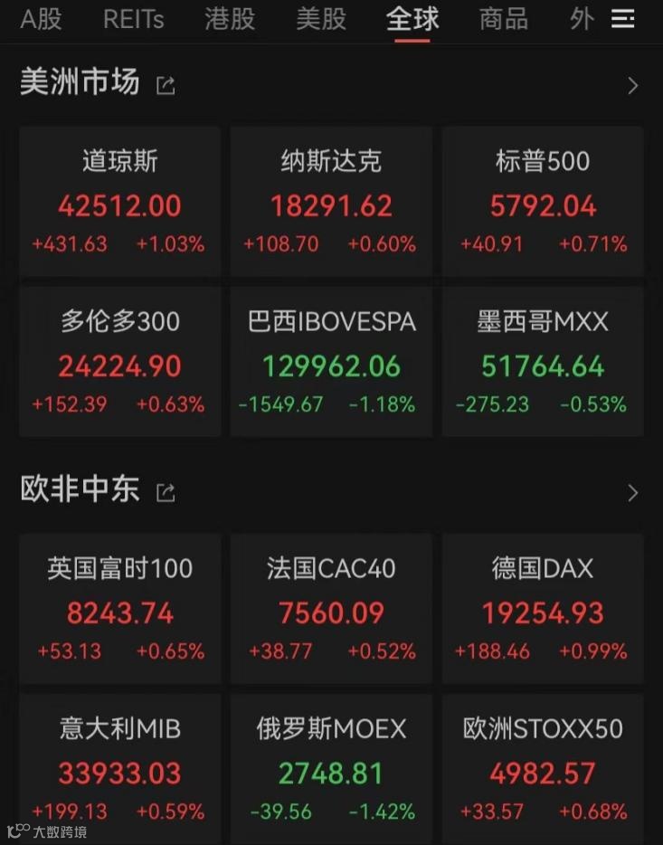 三大股指收盘全线上涨。