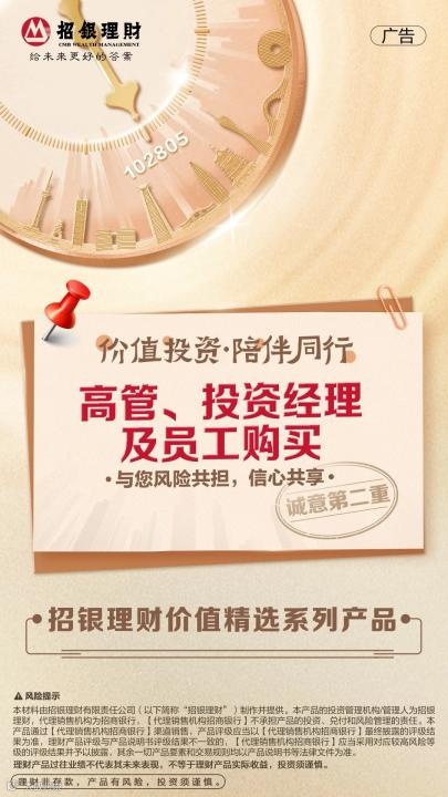 近日,招银理财表示,与客户风险共担、信心共享,公司以自营资金购买旗下“招银理财价值精选系列产品”。不仅如此,招银理财高管、投资经理及员工亦购买了该系列产品。此外,当该系列产品净值低于1时,招银理财将不收取管理费。