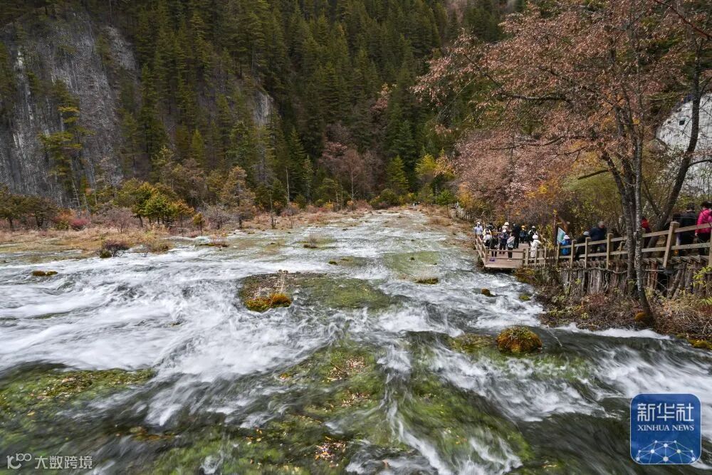 11月16日,游客在九寨沟景区五彩池观光。新华社记者 刘莲芬 摄